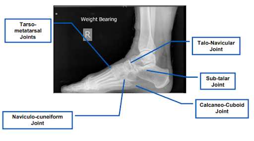 Joints which may be included in midfoot and hindfoot fusion surgery (Source: NHS).