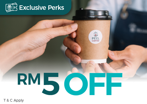 RM5 off with a minimum purchase of RM30 at Peel Coffee or Macalister Coffee.