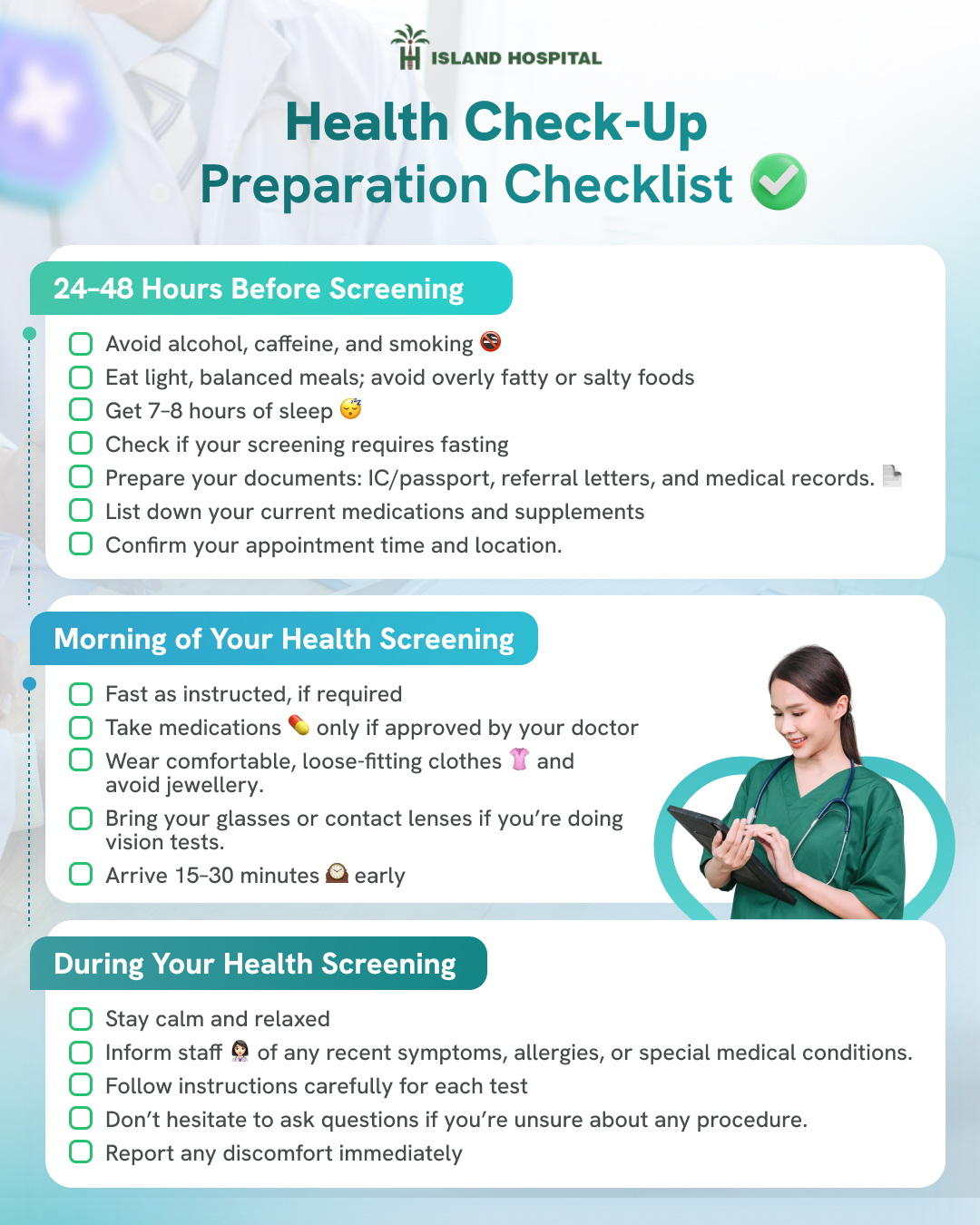 Taking care of your health doesn’t have to be complicated. With Island Hospital’s comprehensive health screening packages, you can take proactive steps toward early detection, peace of mind, and long-term well-being.
